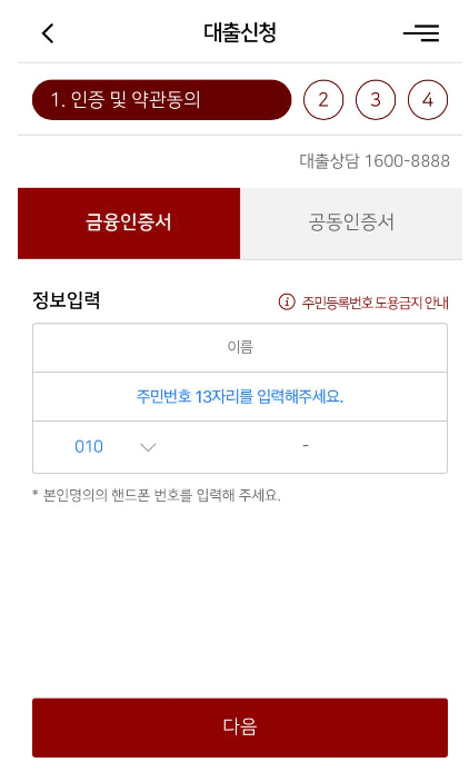3. 금융인증서 또는 공동인증서를 통해 본인인증을 합니다.